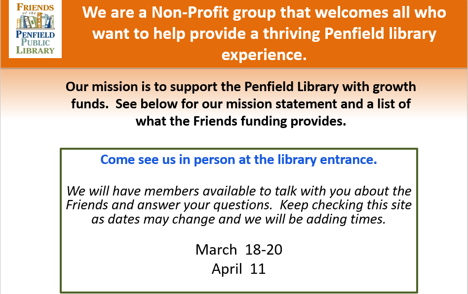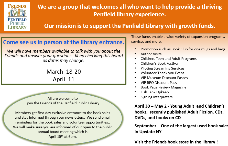 Contact Us: Friends.Penfield.Public.Library@gmail.com